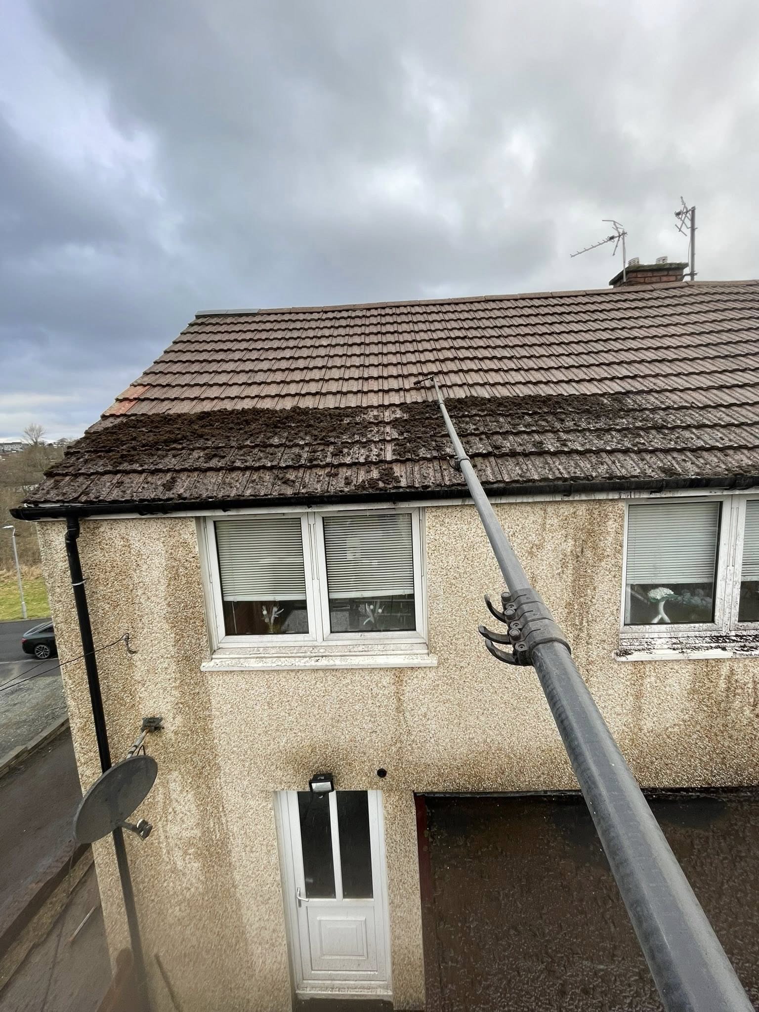 Exterior cleaning and roof cleaning work in AyrshireProfessional roof and property cleaning by Jimbos CleaningRender softwashing and exterior cleaning resultsDriveway and gutter cleaning in Ayrshire and GlasgowRoof steam cleaning and moss removal - before and afterPVC and window cleaning - Jimbos Cleaning gallery